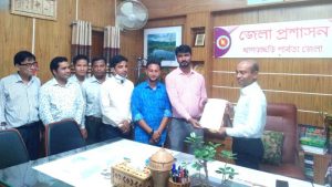 দাবি জানিয়ে স্মারকলিপি প্রদান দুর্যোগ ব্যবস্থাপনার কর্মকর্তাদের