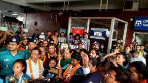 ট্রফি নিয়ে দেশে ফিরল চ্যাম্পিয়নরা, বিমানবন্দরে মিষ্টিমুখ করিয়ে বরণ