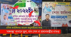 প্রধানমন্ত্রীর মহাসমাবেশের প্রচারণায় ভুল বানানে ভরা ব্যানার!