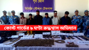 নাফনদীর মোহনা থেকে বিপুল পরিমাণ অস্ত্র-গুলিসহ ৬ রোহিঙ্গা ডাকাত গ্রেফতার