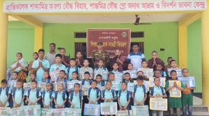 বান্দরবানে সেনাবাহিনী উদ্যেগে বৌদ্ধ ম্রো অনাথালয়ে শিক্ষা ও ক্রীড়া সামগ্রী বিতরণ