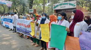 চমেকে শিক্ষানবিশ চিকিৎসকদের মানববন্ধন