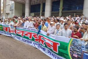 চট্টগ্রামের বন্দর-পতেঙ্গায় যানজট নিরসনে এলাকাবাসীর মানববন্ধন