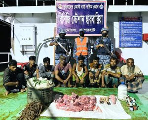 বাংলাদেশ কোস্ট গার্ডের অভিযান, হরিণের মাংস ও কাঁকড়াসহ আটক ৮