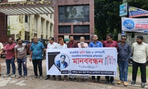 লক্ষ্মীপুরে সাংবাদিক নির্যাতন ও হত্যার প্রতিবাদে মানববন্ধন
