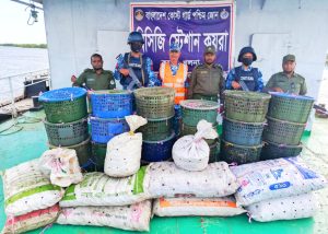 সুন্দরবনে কোস্ট গার্ডের অভিযান, ৮৫০ কেজি অবৈধ কাঁকড়া জব্দ