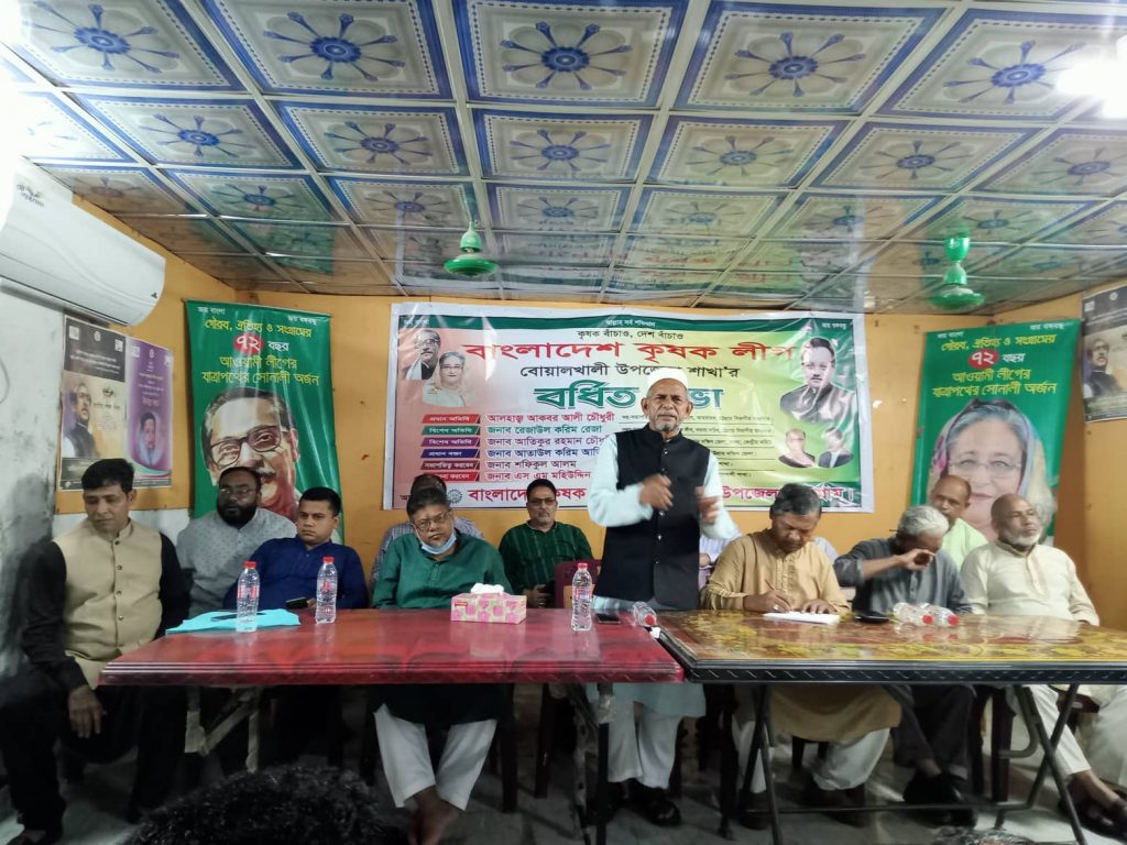 বাংলাদেশ কৃষক লীগ বোয়ালখালী শাখার বর্ধিত সভা উপজেলা কৃষক লীগের সভাপতি শফিকুল আলমের সভাপতিত্বে অনুষ্ঠিত হয়েছে।