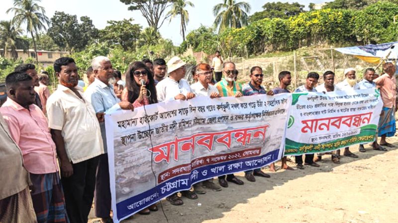 হাইকোর্টের নির্দেশ অনুযায়ী কর্ণফুলীর দুই সহস্রাধিক অবৈধ স্থাপনা আগামী ১৫ দিনের মধ্যে উচ্ছেদের দাবি জানিয়ে সদরঘাটে মানববন্ধন করেছে চট্টগ্রাম নদী ও খাল রক্ষা আন্দোলন। আগামী বুধবার (৯ নভেম্বর) দুই শতাধিক সাম্পান নিয়ে ভোর ৬টা থেকে দুপুর ২টা পর্যন্ত চাক্তাই খালের মোহনায় নদীতে অনশন ধর্মঘট করবে পাঁচটি সংগঠন।