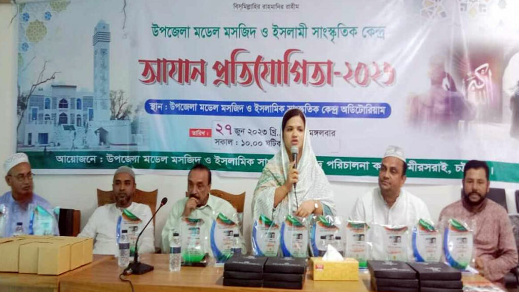 সভাপতির বক্তব্যে উপজেলা নির্বাহী অফিসার মাহফুজা জেরিন বলেন, একজন মুসলিম হিসেবে জন্মগ্রহনের সাথে সাথে আযানের মাধ্যমে তার ধর্মীয় পরিচয় ফুটে উঠে। আল্লাহ রাব্বুল আলামিন মানুষকে তার ইবাদতের জন্য সৃষ্টি করেছেন। প্রতিদিন ৫ওয়াক্ত নামাজের জন্য মুয়াজ্জিন আযানের মাধ্যমে নামাজের জন্য আহবান করে থাকেন। আযানের গুরুত্ব ও তাৎপর্য অপরিসীম। আমরা উপজেলা মডেল মসজিদ ও ইসলামীক সাংস্কৃতিক কেন্দ্রের মাধ্যমে শুদ্ধ উচ্চারণে আযান দেওয়ার জন্য অন্যদের অনুপ্রাণিত করতে এই প্রতিযোগিতার আয়োজন করেছি।