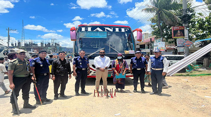চট্টগ্রামের চন্দনাইশে বিভিন্ন গাড়িতে হাইড্রোলিক হর্নের ব্যবহার বন্ধে অভিযান পরিচালনা করেছে চন্দনাইশ উপজেলা প্রশাসন। মঙ্গলবার (২৫ জুলাই) সকাল থেকে দুপুর পর্যন্ত উপজেলার দোহাজারীতে এ অভিযান পরিচালনা করা হয়। এসময় হাইড্রোলিক হর্ণ ব্যবহার করায় ৬টি বাসকে ১৫ হাজার টাকা জরিমানা ও বাসগুলো থেকে ১০টি হাইড্রোলিক হর্ন জব্দ করা হয়। একই অভিযানে নিষিদ্ধ পলিথিন বিক্রয় করায় দোহাজারীর হক স্টোরকে ৫০০০ টাকা জরিমানা ও ৪০০ কেজি নিষিদ্ধ পলিথিন জব্দ করা হয়।