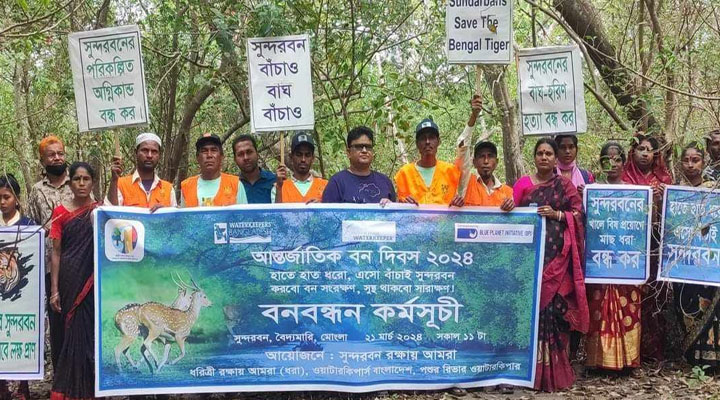 শুক্রবার (২১শে মার্চ) সকাল ১১টায় বিশ্ব বন দিবস উপলক্ষে মোংলার বৈদ্যমারি সংলগ্ন সুন্দরবন এলাকায় বনবন্ধন কর্মসুচিতে বক্তারা এসব কথা বলেন। সুন্দরবন রক্ষায় আমরা, ধরিত্রী রক্ষায় আমরা (ধরা), ওয়াটারকিপার্স বাংলাদেশ ও পশুর রিভার ওয়াটারকিপারের আয়োজনে বনের সাথে সহাবস্থানের অংশ হিসেবে মানুষ এবং বন মিলে এ বনবন্ধন কর্মসুচির আয়োজন করা হয়।