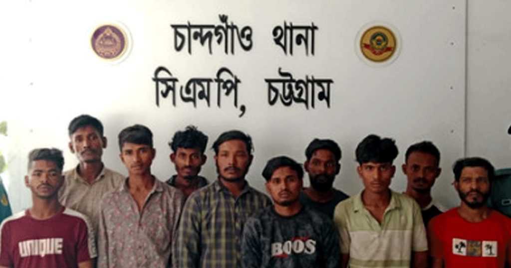 গ্রেপ্তাররা হলেন— চট্টগ্রাম-কক্সবাজার যাত্রীবাহী হানিফ পরিবহনের বাসের সুপারভাইজার মো. ওসমান গনি (২৫), মো. দেলোয়ার হোসেন (২৫), মো. আরমান (৩১), মো. ইব্রাহিম (২৯), মো. রাজু (২৯), বিজয় বড়ুয়া (২৩), মো. আজগর আলী (২১), মো. ইমরান হোসেন বাপ্পী (২১), মো. সুমন (২৮), এবং মো. কবির (৪২)।