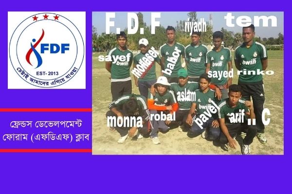 সংগঠন প্রতিষ্ঠাতা এবং সভাপতি আরিফ মঈন উদ্দিন জানান, ক্রীড়া এবং সমাজ উন্নয়নের উদ্দেশে এফডিএফ ক্লাবের সৃষ্টি। ক্লাবের নিজস্ব অর্থায়নে ক্রীড়ার পাশাপাশি আমরা সামাজিক কর্মকাণ্ড অংশগ্রহণ করি।