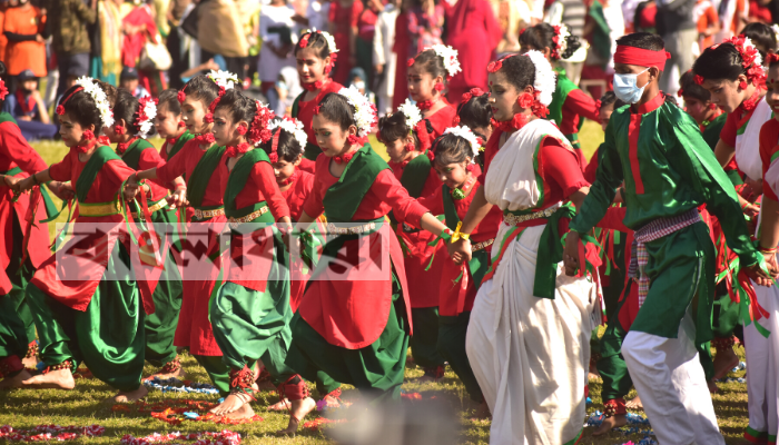 লাল শাড়ি- সবুজ ব্লাউজ ও থ্রি পিচ পরিহিত বিভিন্ন শিক্ষার্থীরা পুরো স্টেডিয়াম মাতিয়ে তুলেছে। সন্ধ্যা ৬টায় আয়োজন করা হয়েছে জমকালো আতশবাজি ও লেজার শো’র।