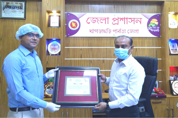 রোববার (৫ জুলাই) দুপুরের দিকে সামাজিক দূরুত্ব বজায় রেখে সীমিত আয়োজনে খাগড়াছড়ি জেলা প্রশাসক প্রতাপ চন্দ্র বিশ্বাসের হাতে পুরস্কার হিসেবে ক্রেস্ট ও সনদপত্র গ্রহণ করেন মাটিরাঙ্গা উপজেলা নির্বাহী অফিসার বিভীষণ কান্তি দাশ।