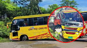 নিয়ন্ত্রণ হারিয়ে গাছের সাথে বাসের ধাক্কা