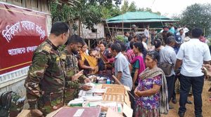বান্দরবানে ফিরে আসা পরিবারের মাঝে ত্রাণ সহায়তা প্রদান