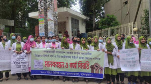 বান্দরবানে ডিপ্লোমা ইন্টার্ন নার্স ও মিডওয়াইফদের মানববন্ধন ও কর্মবিরতি
