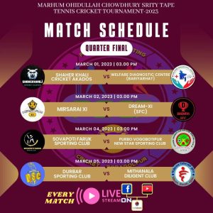 মিরসরাইয়ে ওহীদুল্লাহ ক্রিকেট টুর্নামেন্টের কোয়ার্টার পর্ব শুরু, মুখোমুখি ৮ দল