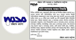 চট্টগ্রামে ৩৬ ঘণ্টা পানি সরবরাহ বন্ধ থাকবে কিছু এলাকায়, ওয়াসার সতর্কবার্তা