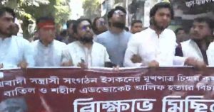 ইসকন নেতা চিন্ময় কৃষ্ণ দাসের জামিন বাতিলের দাবিতে বিক্ষোভ