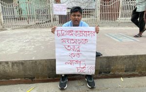 কক্সবাজার মহাসড়ক চার লেনের দাবিতে ছাত্রনেতার একক অবস্থান